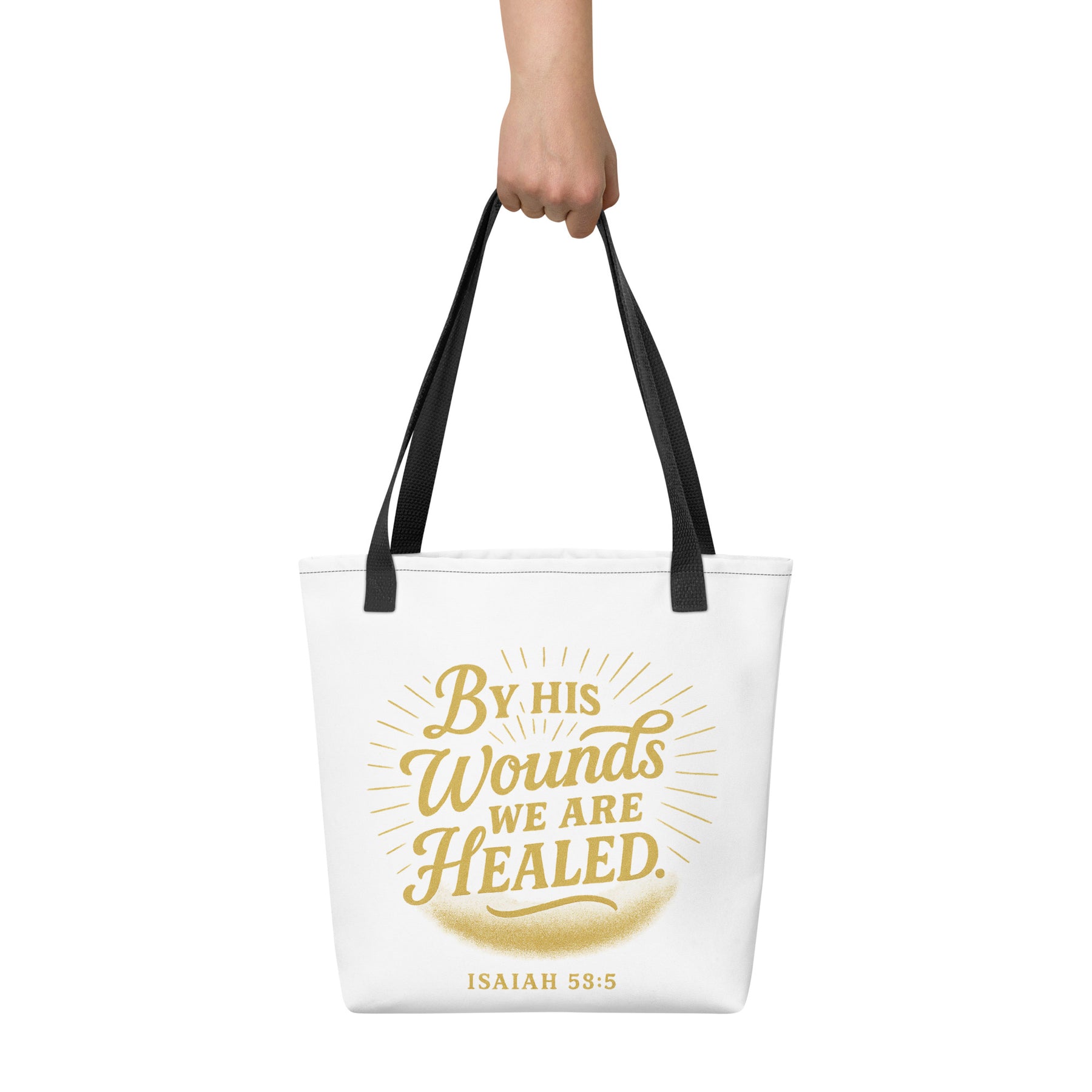 By his wounds we are healed Tote bag